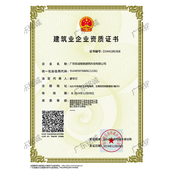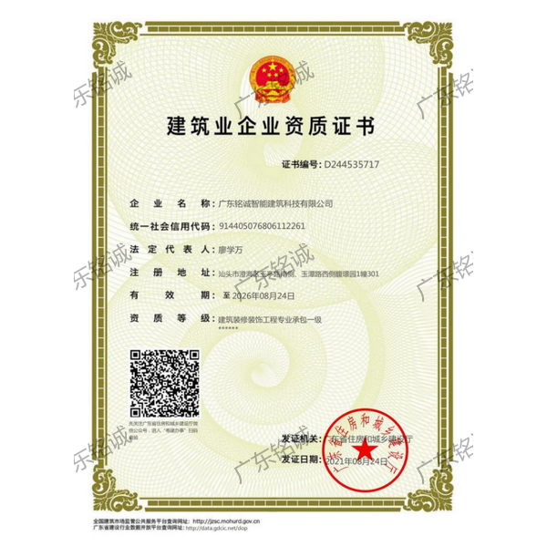 廣東銘誠智能建筑科技有限公司成立于2008年,公司注冊資金為6000萬元,集辦公裝修、酒店裝修、家庭裝修、軟裝裝飾、娛樂場所裝修為一體的裝飾公司,率先提出“創(chuàng)造現(xiàn)代人文空間,挑戰(zhàn)業(yè)界高峰”的雄壯口號,并以此為目標(biāo),完成了一大批具有影響力的大型公裝工程:其中包括廣州國際中醫(yī)藥展貿(mào)中心、奧飛澄海音樂廳、澄海區(qū)國家稅務(wù)局、澄海興信小額貸款、澄海潮商村鎮(zhèn)銀行、汕頭龍湖賓館、澄海豪庭大酒店、御園國際飲食城、澄海福晉軒酒家、享樂匯保健有限公司、假日商務(wù)酒店、尚景康園物業(yè)、星輝車模股份有限公司、奧飛動漫有限公司、香港國際玩具、汕頭萬基貿(mào)易有限公司、泰興源實業(yè)有限公司、汕頭皇冠玩具有限公司等;家裝工程包括南澳黃金海岸整幢的精裝房、中信華府、富春華庭、金信鳳凰名城、凱旋花園、中信金城、柏嘉半島、陽光海岸、金葉島等高等住宅。 ? 廣東銘誠智能建筑科技有限公司經(jīng)過十余年的建筑裝飾裝修施工領(lǐng)域項目積淀,于2018年2月取得“建筑裝修裝飾工程專業(yè)承包二級”、“建筑機電安裝工程專業(yè)承包三級”、“建筑工程施工總承包三級”、“施工勞務(wù)不分等級”、“安全生產(chǎn)許可證”等專業(yè)資質(zhì),并于2021年8月建筑裝修資質(zhì)正式升級為“建筑裝修裝飾工程專業(yè)承包一級”。這是對企業(yè)規(guī)模、工程業(yè)績、管理水平、誠信表現(xiàn)的肯定,是企業(yè)實力與能力的展現(xiàn)。 ? 公司每一項工程都始終堅持“精美設(shè)計、精心施工、確保合同承諾;勤奮開拓、追求突出、創(chuàng)造時代精品”的質(zhì)量方針,力爭做一項工程,樹一座豐碑。 ? ?銘誠擁有一支由專業(yè)的營銷精英和客戶顧問組成的營銷隊伍,勤奮、敬業(yè)的每一位銘誠員工將本著“贏在別人休息時”的專業(yè)精神,為客戶提供全程營銷及售后服務(wù),確保客戶的合法利益,提供體貼周到的服務(wù),做到讓顧客滿意。 ? 銘誠擁有一批資老牌室內(nèi)環(huán)境設(shè)計師,以“現(xiàn)代人文空間”為設(shè)計理念,為客戶提供人性化、差異化、智能化的室內(nèi)環(huán)境設(shè)計服務(wù),準(zhǔn)確的將人性化特點與室內(nèi)環(huán)境相融合,達到了“現(xiàn)代人文空間”的和諧統(tǒng)一。 ? ? ? ?自主創(chuàng)新、視社會責(zé)任為己任的精神使我們在發(fā)展的道路上屢獲殊榮:不斷提升的銘誠品牌知名度和美譽度,靠的是優(yōu)質(zhì)的產(chǎn)品,靠的是不斷提升的營業(yè)績,靠的是國內(nèi)的核心技術(shù)和誠信的服務(wù)。相信通過銘誠人的努力,銘誠將會不斷以新的姿態(tài)為提升廣大消費者的生活質(zhì)量做好服務(wù),為中國裝飾行業(yè)設(shè)計創(chuàng)新做出突出貢獻。 ? ? “忘掉競爭、共